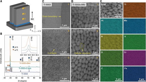 图1. L-PBF法制备Ti-5553的微观结构和力学性能 © 2024 AAAS
