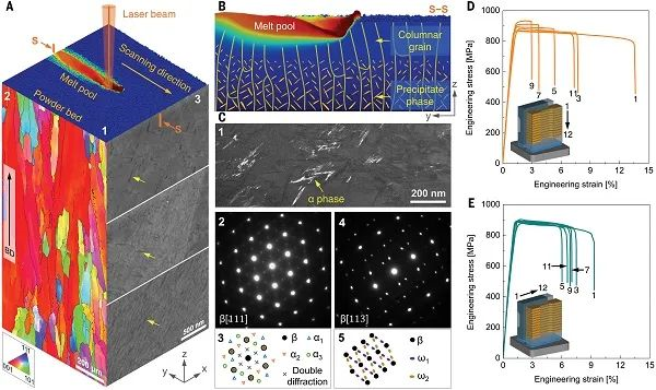 图1、L-PBF法制备Ti-5553的微观结构和力学性能 © 2024 AAAS