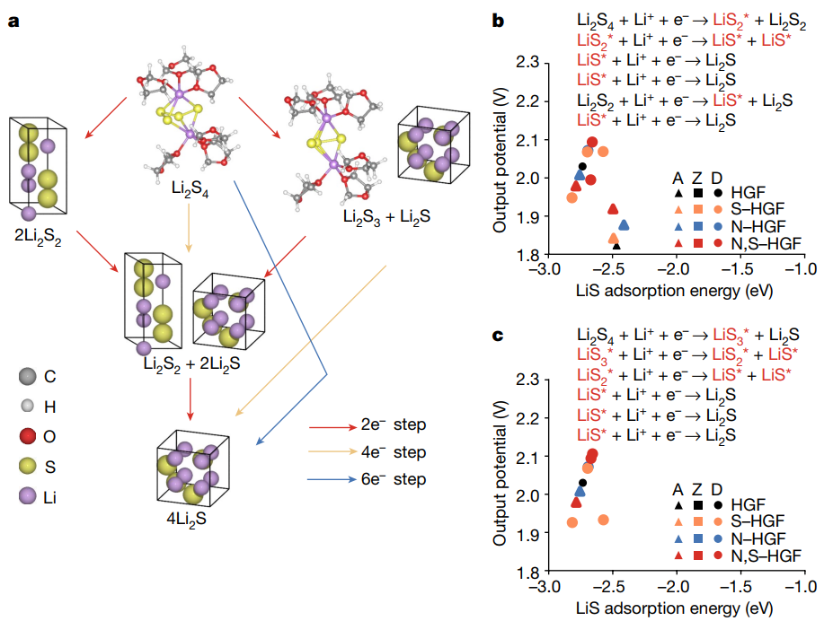 图 5 Li2S4→ Li2S转化的模拟位点特异性输出电位。©2024 Nature