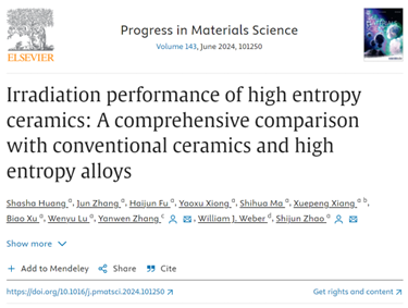 近日,香港城市大学机械工程系的赵仕俊教授团队与美国爱荷华国家实验室的Zhang Yanwen教授团队合作在综述顶刊《Progress in materials science》上发表了“Irradiation performance of high entropy ceramics: A comprehensive comparison with conventional ceramics and high entropy alloys”一文,旨在系统回顾和总结HECs在辐照响应方面的最新进展,包括高熵碳化物、高熵焦磷酸盐氧化物、高熵MAX相和高熵氮化物薄膜等。通过与相应的单组分陶瓷对比,本文深入探讨了化学复杂性对HECs辐照性能的影响,并将HECs与广泛研究的HEAs在辐照响应方面的相似性和差异进行了讨论。文章最后,作者展望了辐照耐受性HECs未来的发展前景。