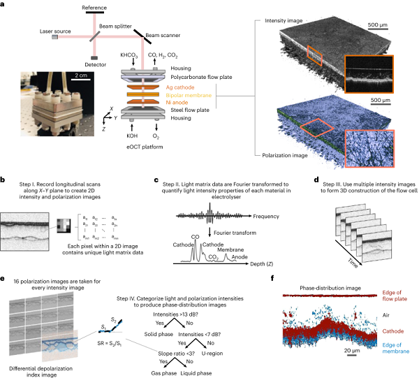 图1 用于实时三维成像CO2电解过程的eOCT平台示意图 © 2024 Springer Nature