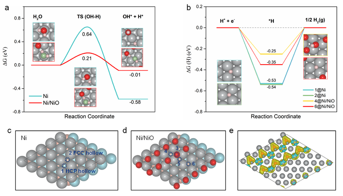 图5 Ni和Ni/NiO表面HER过程的DFT计算