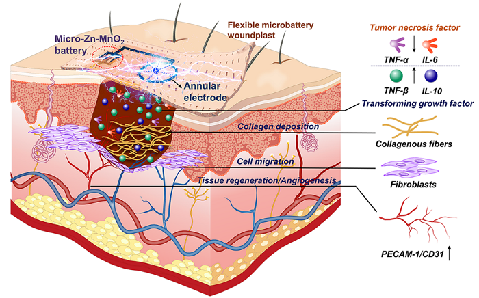 题目:Accelerating wound healing with flexible zinc ion microbatteries coupled with endogenous electrical fields