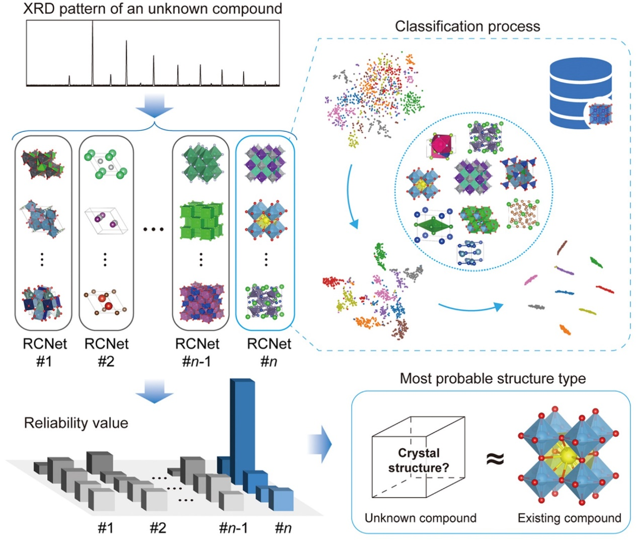 对于无机化合物,X射线衍射(XRD)分析在物质结构解析的过程中起到了重要作用。传统的XRD分析流程中,研究人员在面对未知材料时如果无法从数据库中找到其物相的晶体结构,则需要借用相近的结构模型,通过对该模型进行调整以获得实测物质的晶体结构。该过程中所借用的结构模型对应了未知材料的一种可能的结构类型。对未知材料结构类型的判别一般依赖于专家知识,因而采用机器学习方法实现该过程的自动化仍十分困难。其关键在于无机材料的结构类型种类繁多,导致了训练得到的深度学习分类模型往往难以获得较高精度。