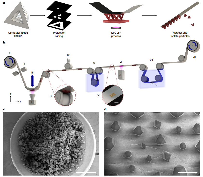 图1 r2rCLIP是具有复杂几何形状的粒子的快速制造工艺