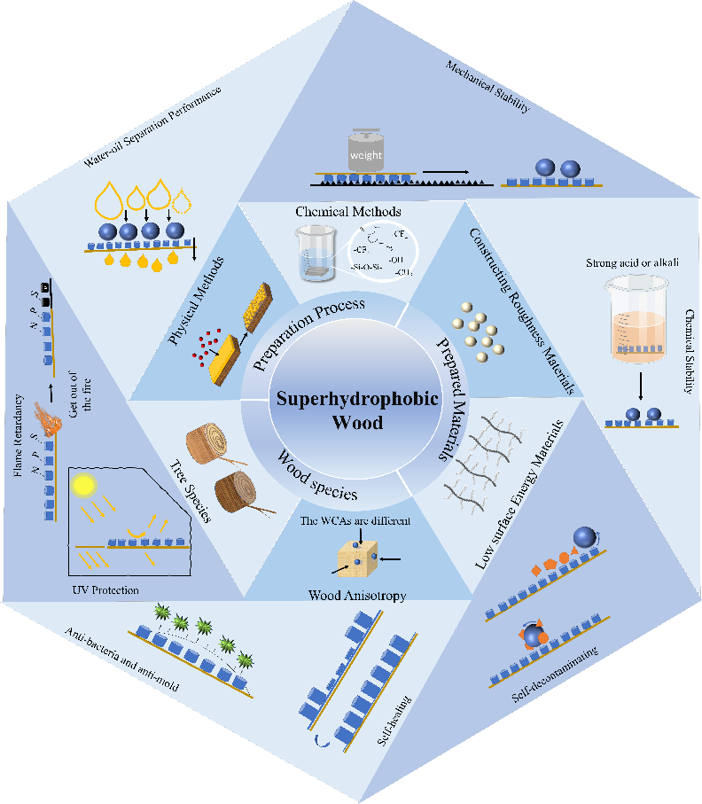 从本质上讲,全面了解制备技术、木材特性,化学试剂和之间的相互作用对于优化超疏水木质复合材料的性能至关重要。