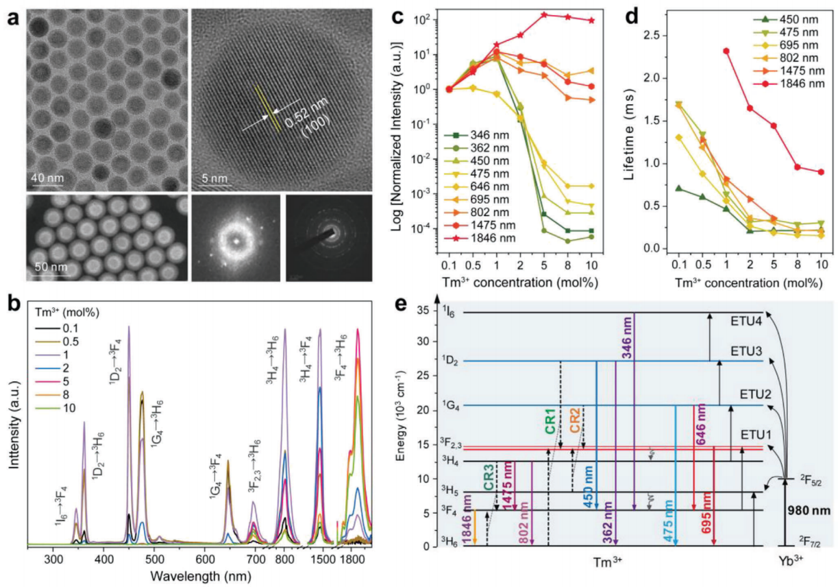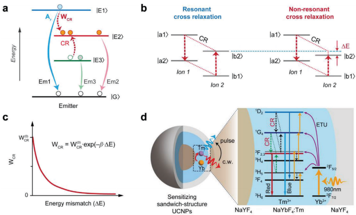 稀土掺杂上转换纳米粒子是一种重要的光功能材料,在超分辨成像、光遗传、纳米温度传感、信息安全以及三维显示等领域具有具有重要应用。近期研究表明,交叉弛豫为发光动力学研究提供了新的可能,如光子雪崩上转换。然而,如何实现交叉弛豫介导的上转换光色调控并揭示其中的光物理机制是本领域的一个挑战性课题。