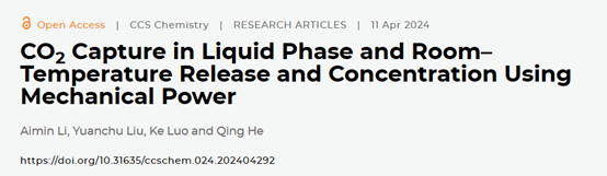 题目:CO2 Capture in Liquid Phase and Room–Temperature Release and Concentration Using Mechanical Power