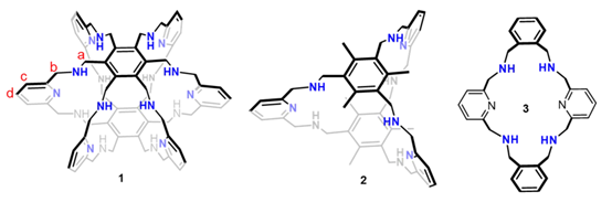 合成得到化合物1–3之后,作者首先将纯CO2气体通入超蕃1的氯仿溶液中,发现有淡黄色的沉淀物快速析出。随后,在室温下鼓入N2至该浑浊溶液后,溶液逐渐澄清(图2A)。作者进一步利用核磁氢谱监测了上述可逆的CO2 “捕获和释放”过程(图2B)。随着CO2的鼓入,CO2诱导的沉淀导致超蕃1的核磁共振氢谱信号全部消失,溶液中的超蕃1完全析出。而当N2气体通入浑浊悬浮液后,超蕃1对应的核磁共振氢谱信号再次出现。当纯CO2通入对照化合物2和3的氯仿溶液中时,并无沉淀析出。因此作者推测超蕃1的氯仿溶液能够通过快速且完全沉淀的方式有效的捕获CO2。