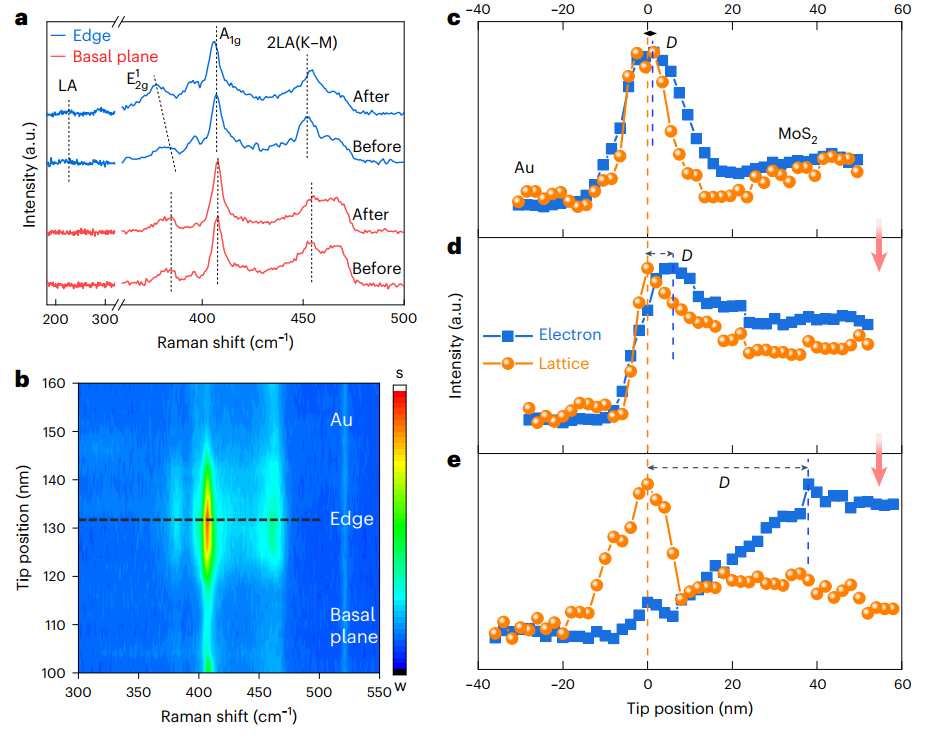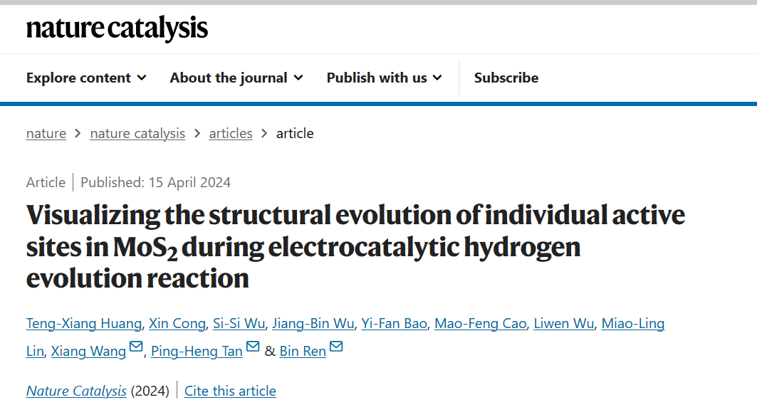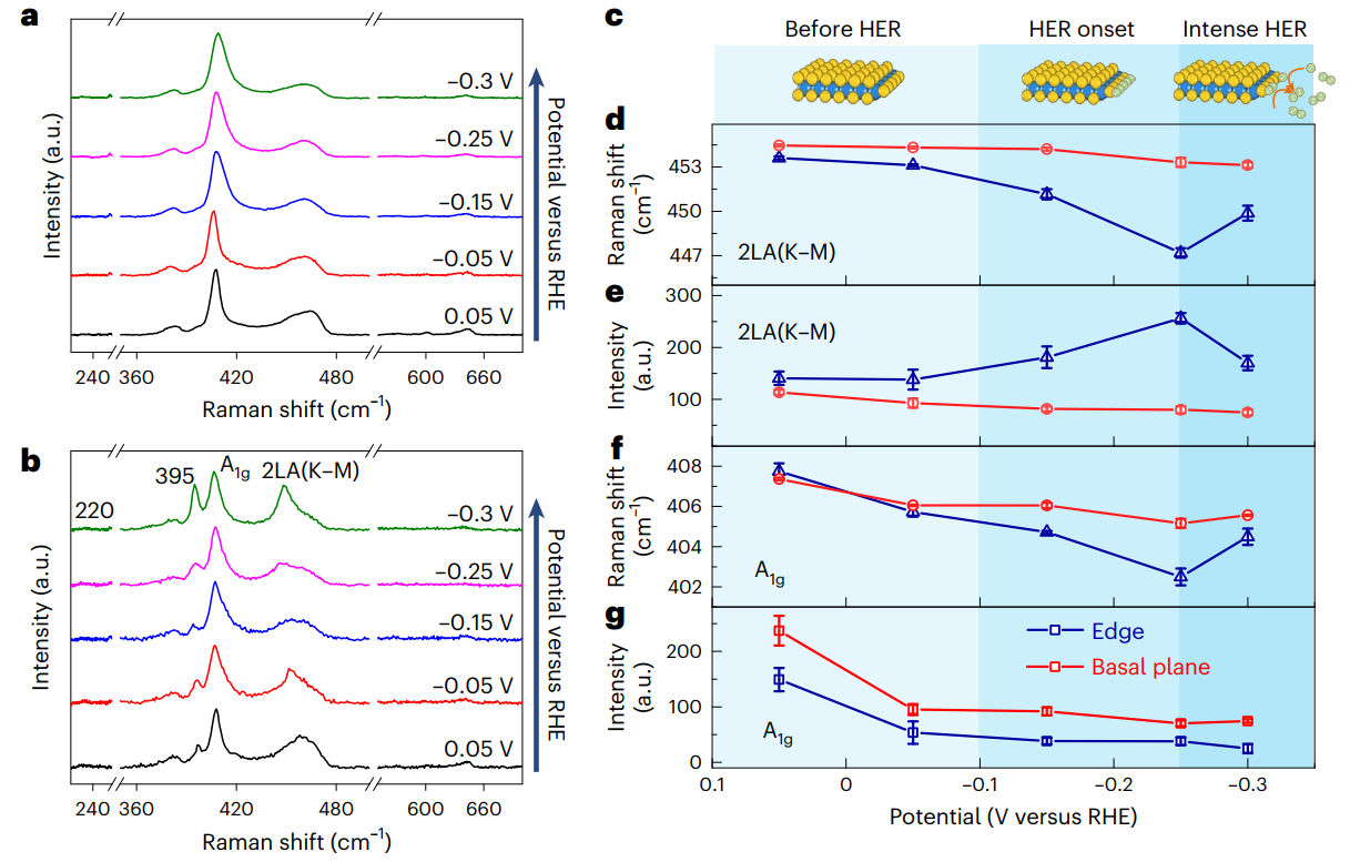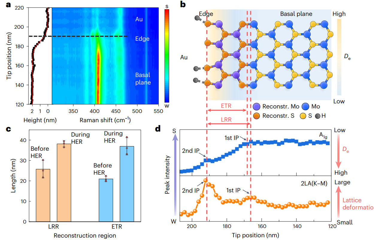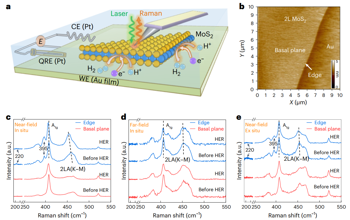 图1 超薄二硫化钼在HER过程中活性位点和非活性位点的EC-TERS研究。 ©2024 Springer Nature