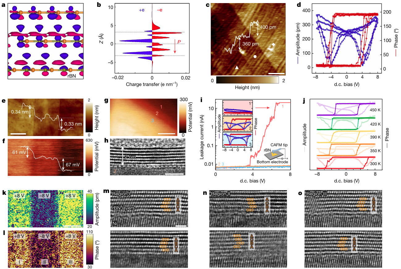 图4 菱方氮化硼滑移铁电性表征。© 2024 Nature