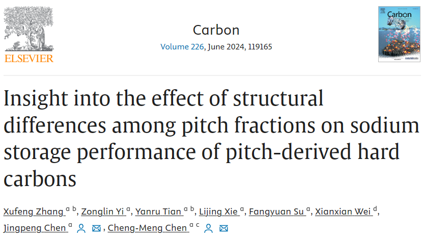 题目:Insight into the effect of structural differences among pitch fractions on sodium storage performance of pitch-derived hard carbons