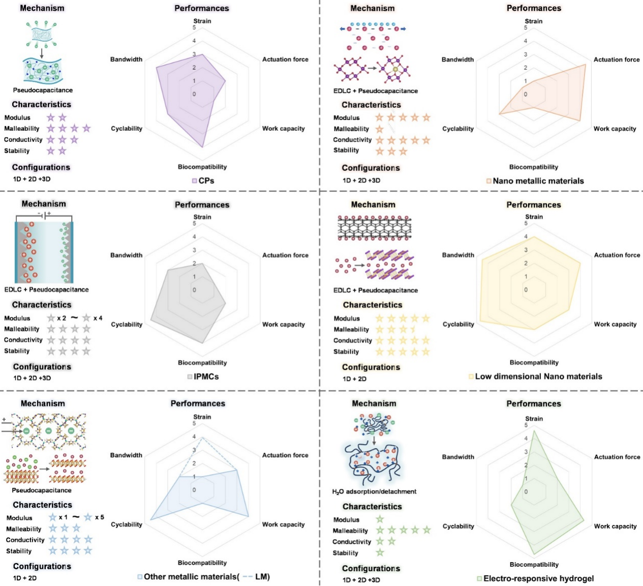 图3. 各类电化学执行器之间的相互联系和协同作用。© 2024 Royal Society of Chemistry