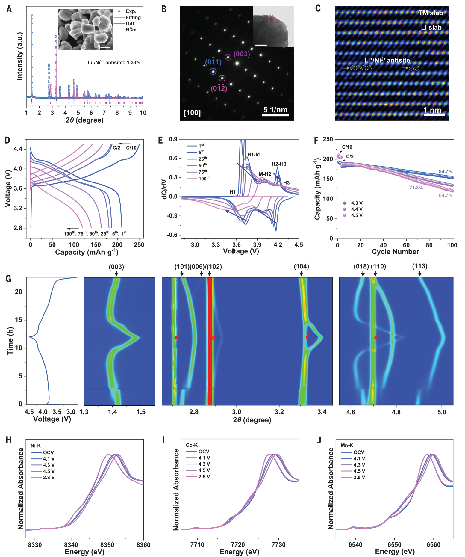 图1. SC-NMC正极的结构和电化学性质。© 2024 AAAS