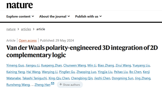 该研究为后摩尔时代未来2D半导体器件的发展提供了思路,以“Van der Waals polarity-engineered 3D integration of 2D complementary logic”为题发表在国际顶级期刊Nature上,引起了相关领域研究人员热议。