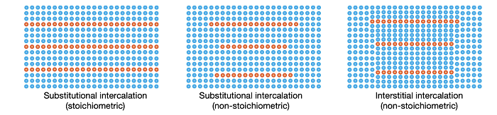 另外值得注意的是,与此前材料界中已发现的嵌入(intercalation)机制不同,在MiGs结构中,外来元素单原子面嵌入基体中,并非是贯穿全层的(如MAX相材料),而是始终填埋在体内的。第二,外来原子始终处在基体原子点阵的间隙位置,而非置换位置(如GP区)。如图三所示,嵌入面没有取代基体的点阵原子,所以基体原子面的连续性没有因为嵌入面而破坏,这使得载流子沿基体原子面内传输,散射几率小。研究人员将这一独特的嵌入机制命名为间隙型嵌入, MiGs结构的存在,则是这种间隙型嵌入的实例。