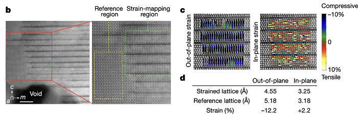 图四 MiGs结构中氮化镓超过10%的弹性形变观测—间隙型嵌入模式的独特特征。 @nature