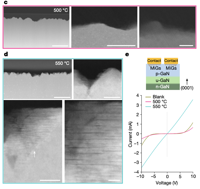 图五 具有MiGs结构的p型氮化镓的电流电压测试。 @nature