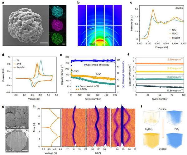 基于此,中国科学院大连化学物理研究所陈忠伟院士和张永光研究员等人在Nature Sustainability发表了题为“Sustainable regeneration of spent cathodes for lithium-ion and post-lithium-ion batteries”的论文,研究人员首先引入温和且可回收的浸出剂来提取高价值元素,而无需额外的复杂杂质去除步骤。随后,采用经济实惠且可扩展的再生方法合成用于锂离子电池及其其他电池类型电池的正极材料,例如钠离子电池(SIBs)和锌离子电池(ZIBs),从而实现向更可持续的存储技术的无缝衔接。结果显示,本文再生的正极材料即使在高荷载的情况下也展现出优异的电化学循环性能,具有优异的界面和结构稳定性,甚至可与现有的商业材料相媲美或优于商业化正极材料。