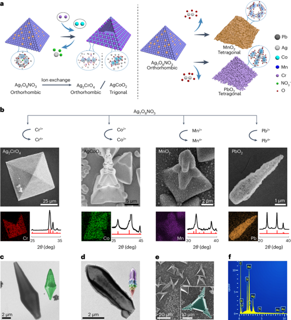 图8. 利用伽伐尼反应将Ag7O8NO3复杂微结构保形转化为其它氧化物材料。