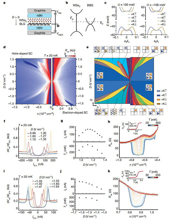 图1 BBG/WSe2的相图和电子和空穴掺杂超导性© 2024 Springer Nature