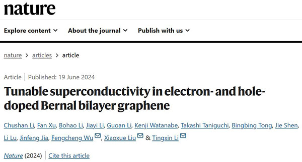 文献链接:“Tunable superconductivity in electron- and hole-doped Bernal bilayer graphene”(Nature,2024,10.1038/s41586-024-07584-w)