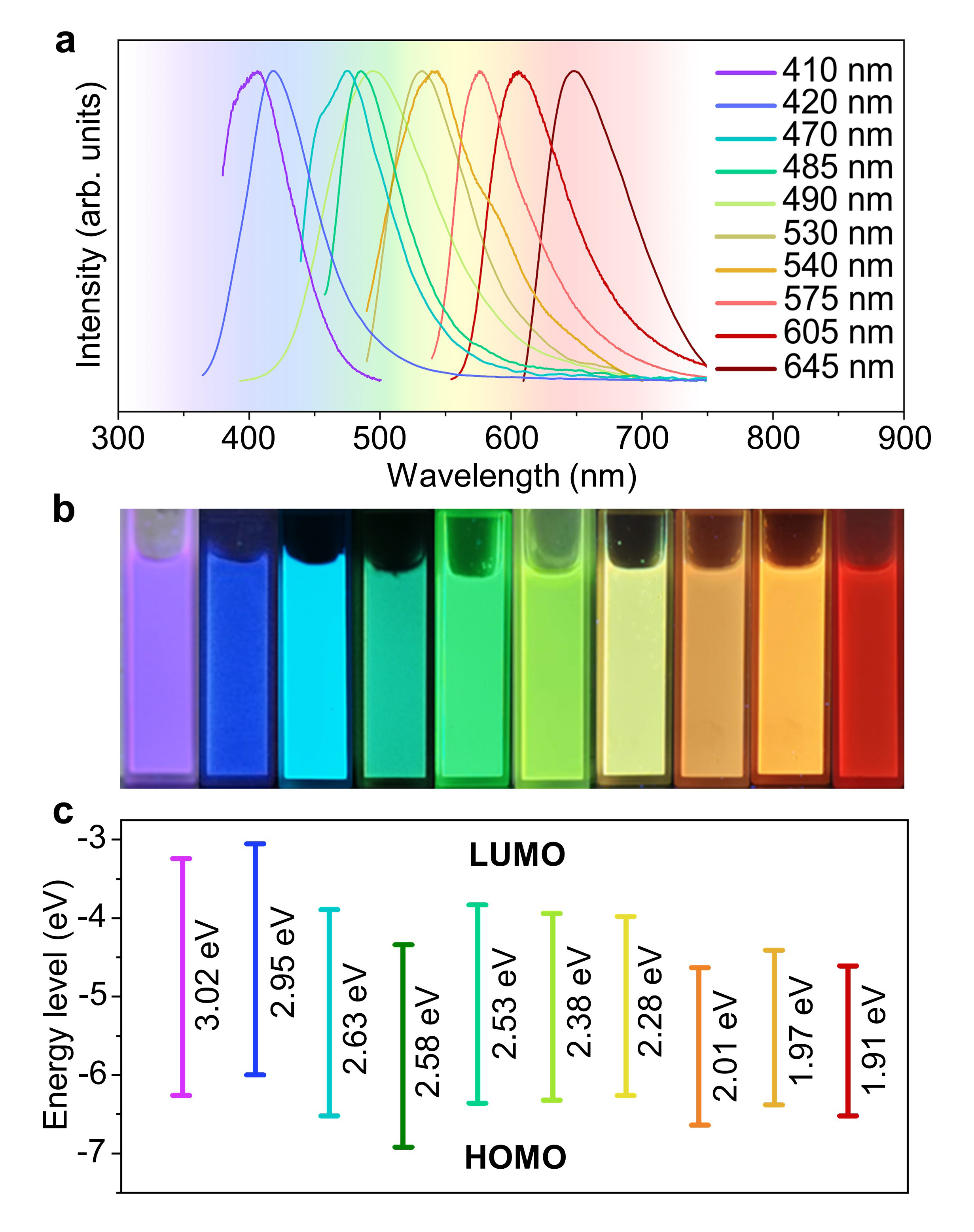 要点一:首次利用机器学习的MOO策略实现了碳量子点的多目标合成优化: PL波长覆盖410-645 nm(即全色),且全部7个颜色的PLQY超过60%。