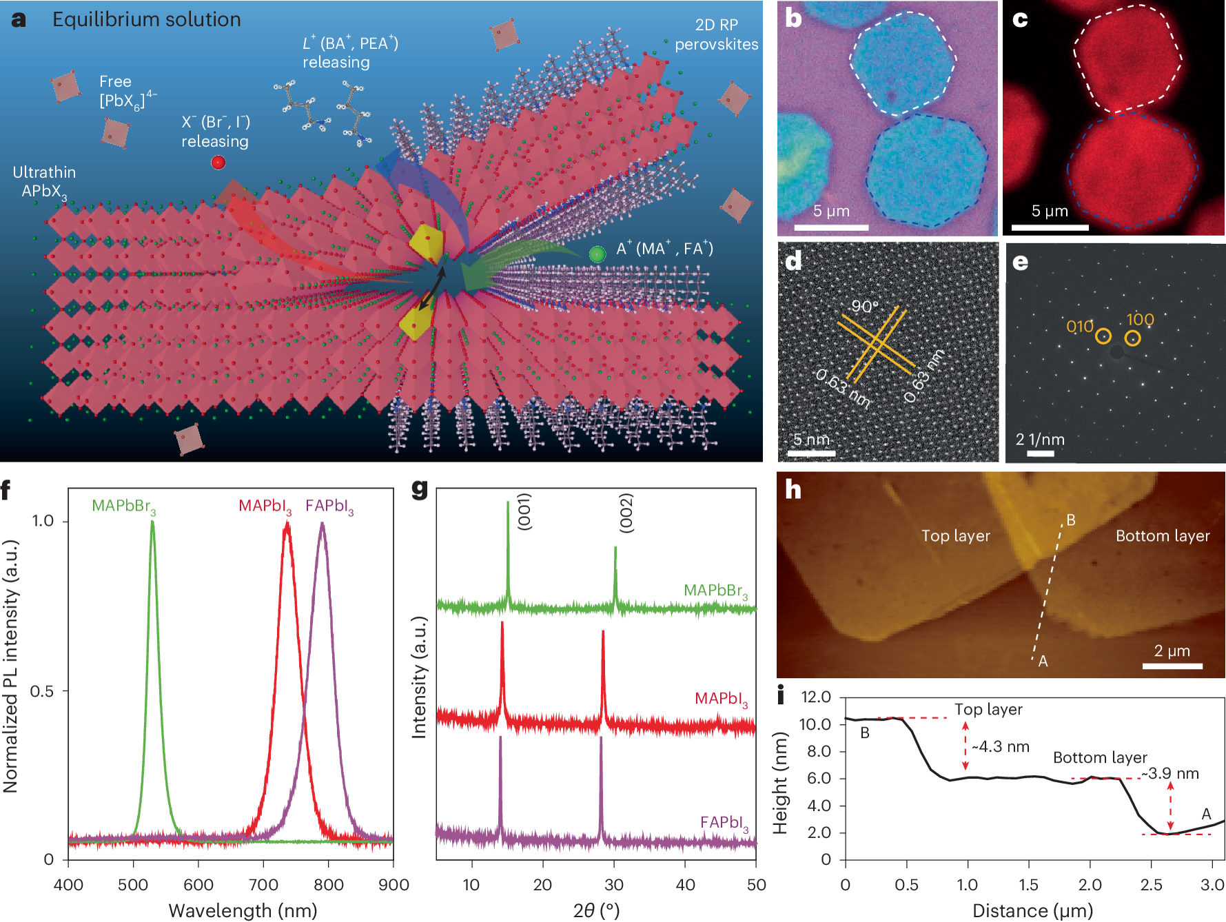 图1.平衡溶液法将RP相二维钙钛矿转化为APbX3相的制备及表征。© 2024 Springer Nature