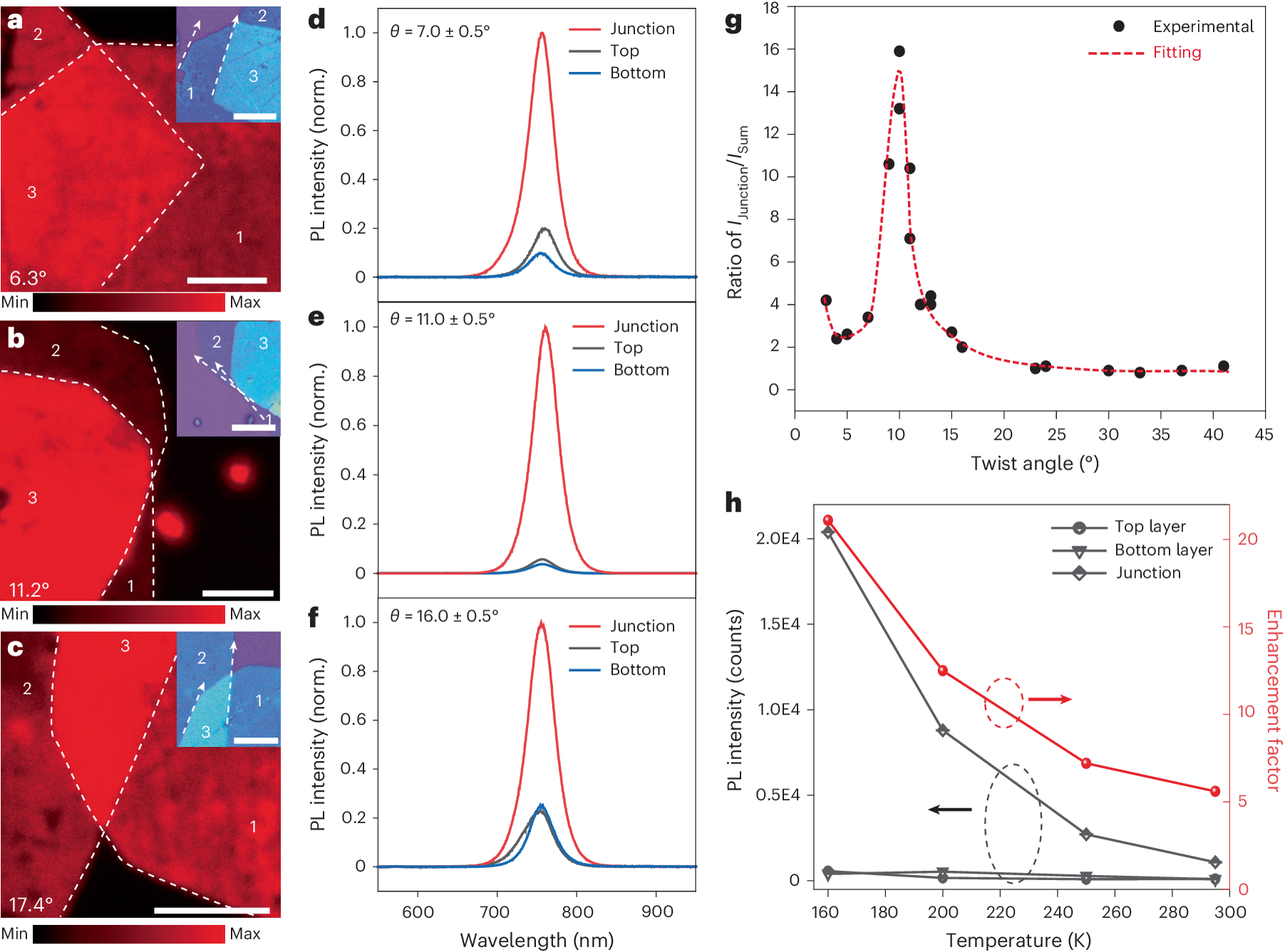 图4. MAPbI3扭转钙钛矿层中与扭转角相关的光致发光。© 2024 Springer Nature