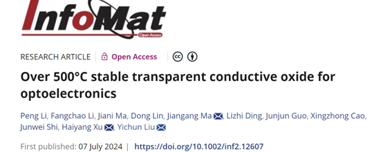该工作以 “Over 500 ºC Stable Transparent Conductive Oxide for Optoelectronics” 为题在线发表在国际知名学术期刊 InfoMat。本文第一作者为东北师范大学李鹏副教授,通讯作者为马剑钢教授、徐海阳教授和刘益春院士。