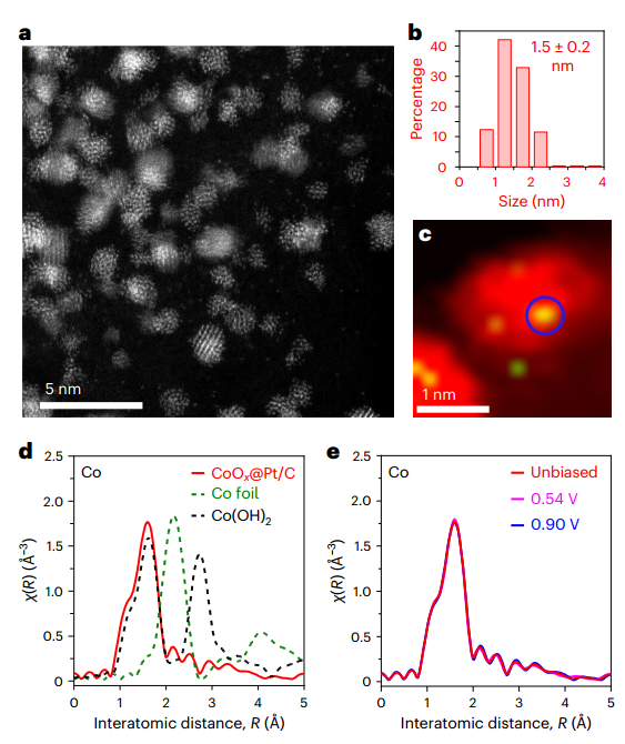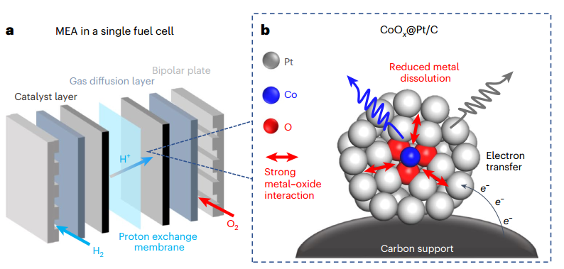该研究提出了一种精细的纳米催化剂CoOx@Pt的设计,为燃料电池催化剂的发展做出了突破性贡献,以“Embedded oxide clusters stabilize sub-2 nm Pt nanoparticles for highly durable fuel cells”为题发表在国际顶级期刊Nature catalysis上,引起了相关领域研究人员热议。