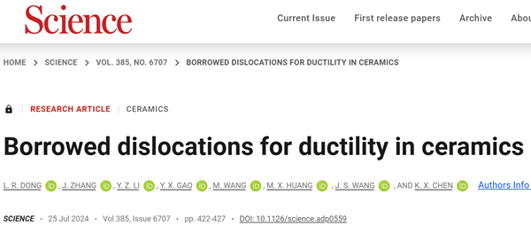 原文详情:Borrowed dislocations for ductility in ceramics (Science 2024, 385, 422-427)