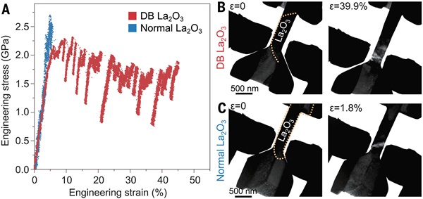 图4 TEM观测下DB La2O3试样的原位拉伸和弯曲试验 © 2024 AAAS