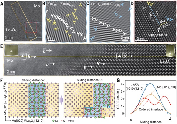 研究人员利用氧化镧(La2O3)陶瓷与钼(Mo)金属形成有序结合界面的材料,制备了“借用位错”La2O3 陶瓷(DB La2O3),通过定制有序键合的 La2O3-Mo 异面结构来验证这一策略。
