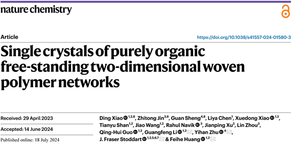 原文详情:Single crystals of purely organic free-standing two-dimensional woven polymer networks (Nat. Chem. 2024, DOI: 10.1038/s41557-024-01580-3)