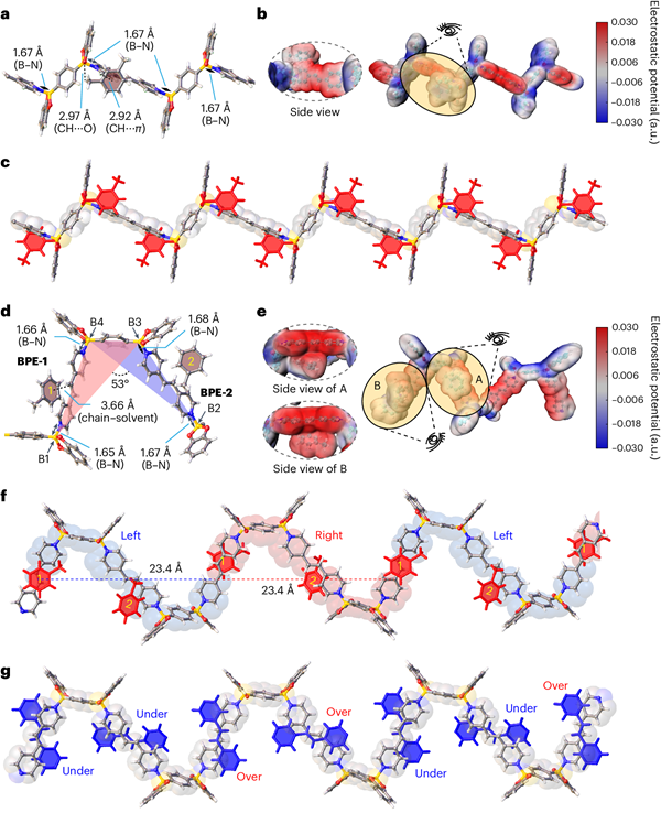 研究人员设计并构建了一类基于配位B-N键驱动的纯有机二维编织聚合物网络。通过X射线单晶分析和对比实验验证了溶剂分子在编织拓扑结构形成过程中的关键作用。此外,利用微机械剥离法成功地制备出了厚度为1.3 nm的二维分子编织聚合物纳米片,获得了全新的二维聚合物材料。随后,通过低剂量冷冻电镜在分子水平上直接、清晰和准确地展示了分子编织聚合物结构特征。此外,编织拓扑结构提供了一种独特而有效的应力分散途径,并提高了刚性晶体的柔韧性。这项研究不仅提出了一种将纯有机编织聚合物网络作为结构奇观的有效方法,而且还揭示了它们的形成机制,以及编织聚合物网络的二维特征和机械性能,为由纯有机独立式2D WPNs构建的功能材料打开了大门。