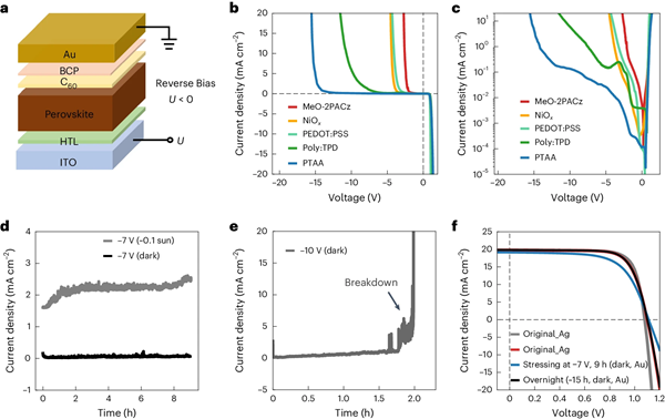 图1 原始p-i-n型钙钛矿太阳能电池中的反向偏置稳定性研究 © 2024 Springer Nature