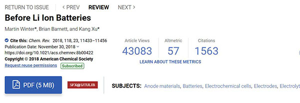 相关论文以““Before Li Ion Batteries”为题发表在Chem. Rev.。(被引次数:1768)