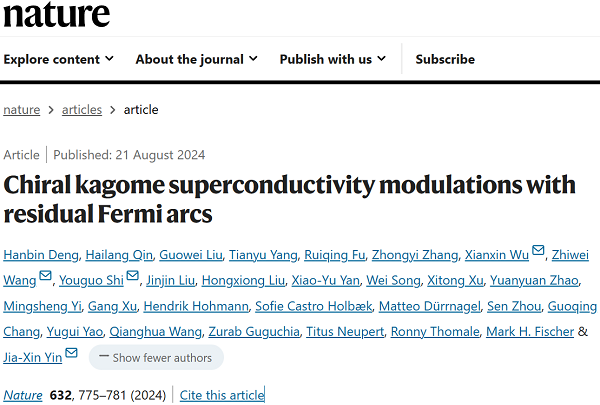 上周,南方HTH官网地址 大学殷嘉鑫等人通过1μeV量级的超高电子谱学空间能量分辨率,观测到在kagome超导体KV3Sb5和CsV3Sb5中的手性超导能隙振荡,厘清了学术界在配对密度波波矢上的争议。研究成果以“Chiral kagome superconductivity modulations with residual Fermi arcs”为题发表在Nature上。(揭秘磁性超导,南方HTH官网地址 大学最新Nature!)