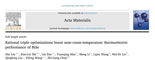 原文详情: “Rational triple optimizations boost near-room-temperature thermoelectric performance of BiSe” (Acta Materialia,2024,120343)