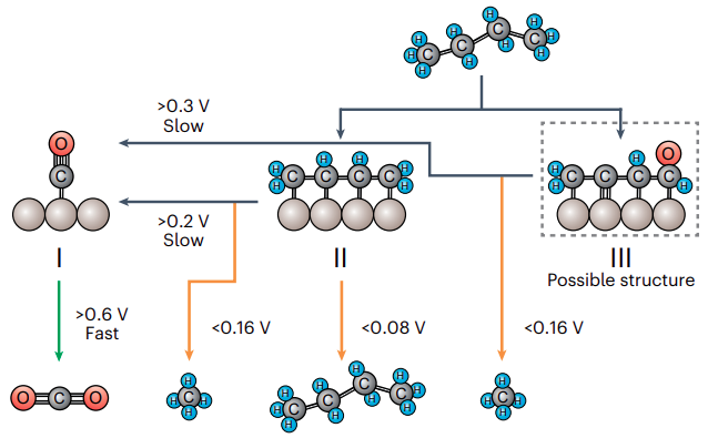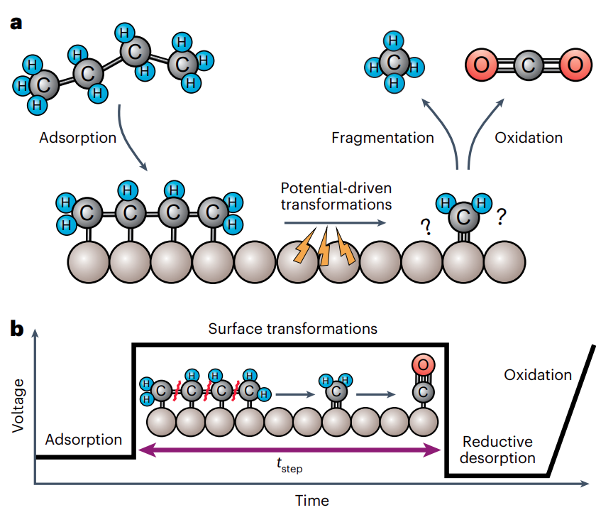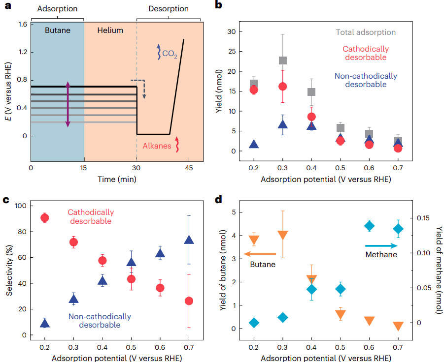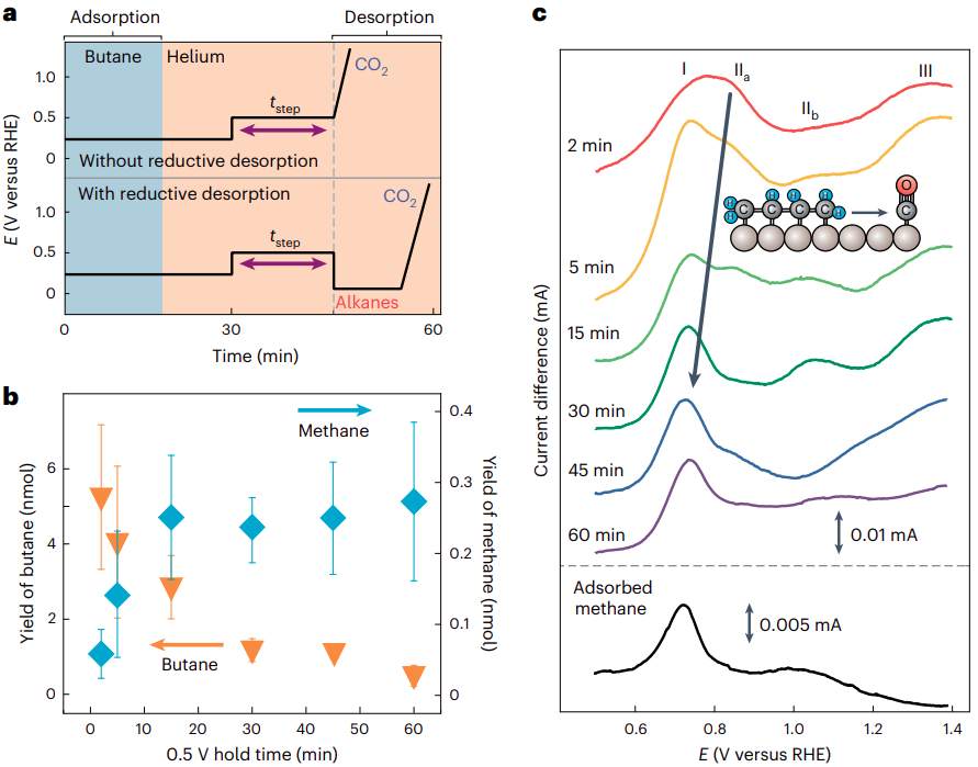 图2 丁烷在Pt上吸附和裂解的电位依赖性。© 2024 Nature