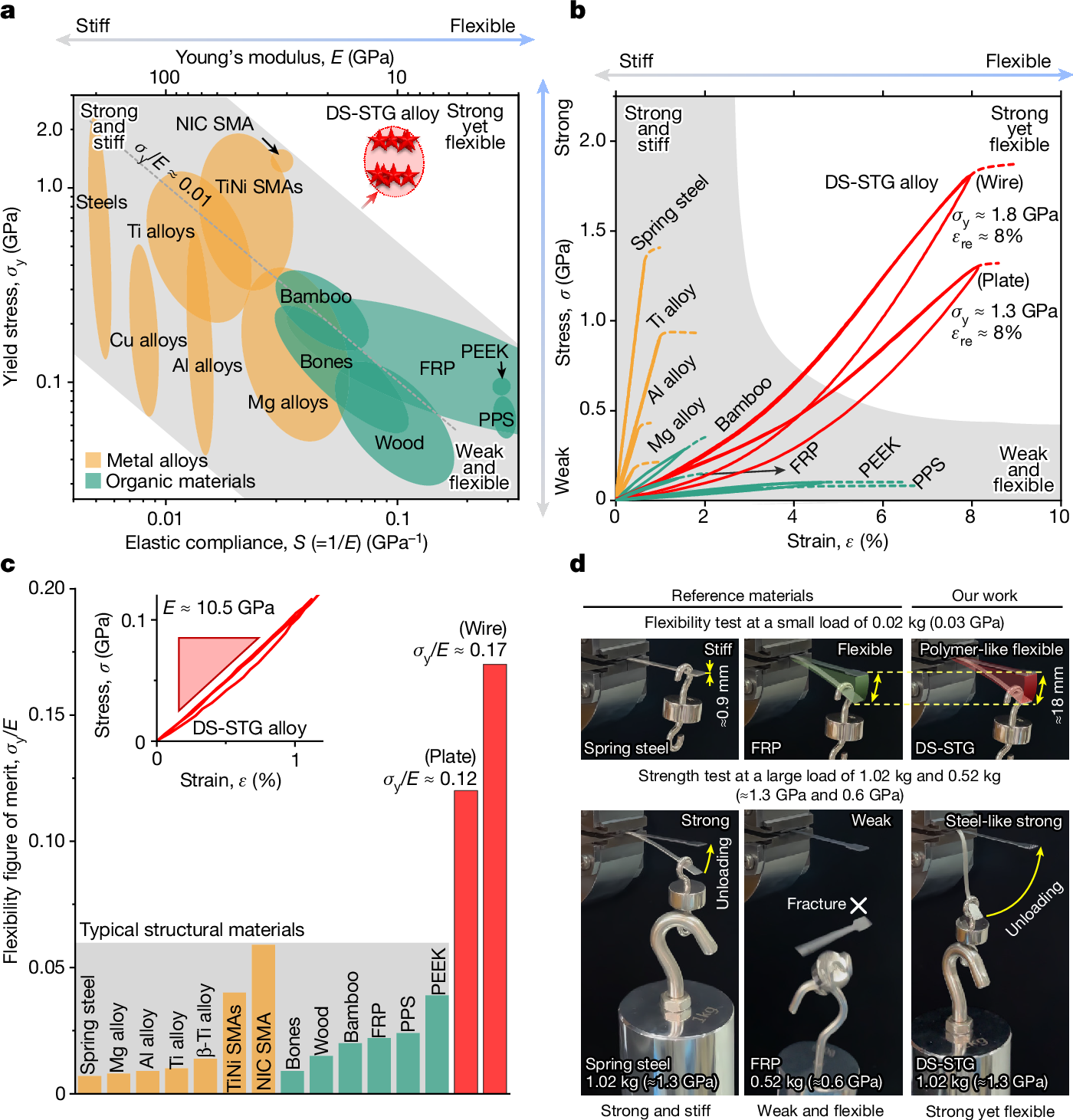 图1. 类聚合物的超高强度DS-STG合金与典型的金属合金材料和有机材料进行比较。© 2024 Springer Nature