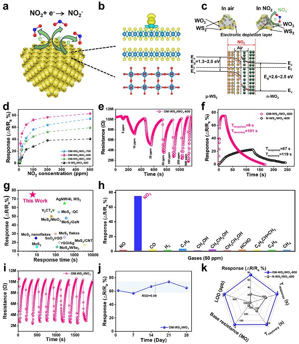 图 4. OM-WS2/WO3在室温下的气敏性能。