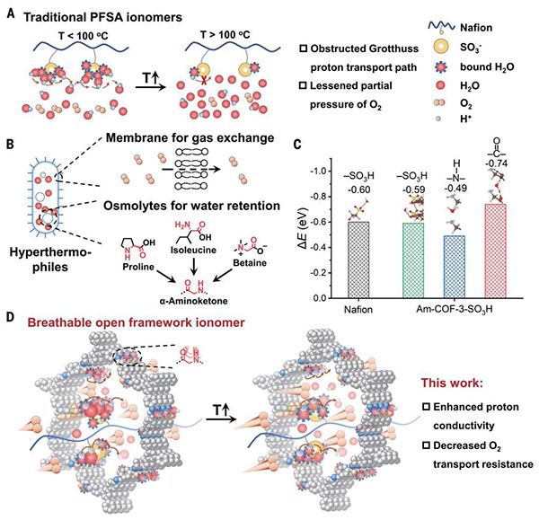 相关研究成果以“Oxygen- and proton-transporting open framework ionomer for medium-temperature fuel cells”为题发表在Science上。