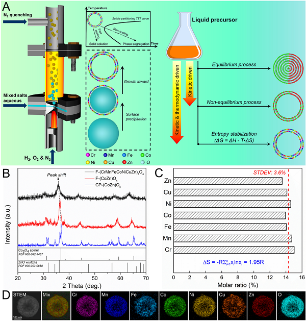 图1. 非平衡火焰气溶胶方法合成高熵陶瓷示意图