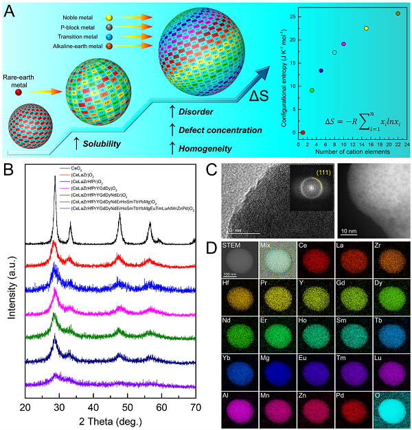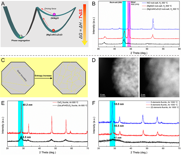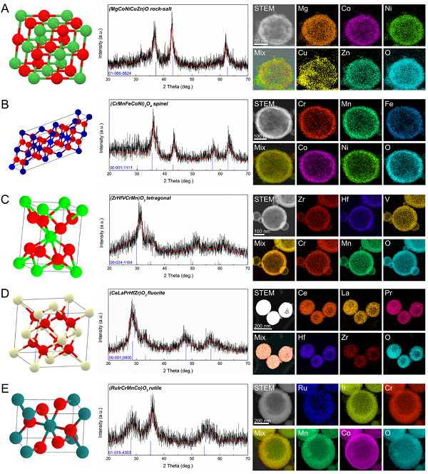 图2. 火焰气溶胶方法合成的不同高熵陶瓷晶体结构