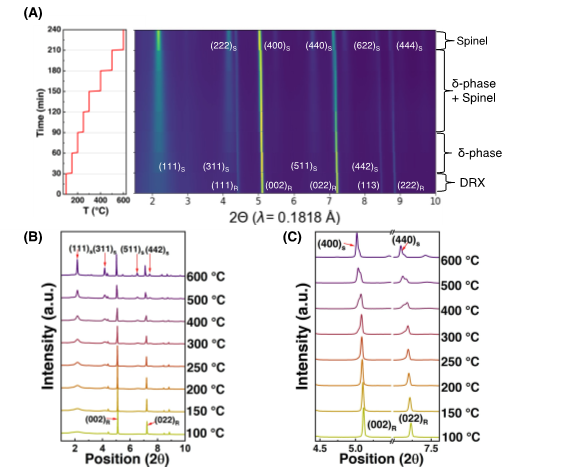在本研究中,表征了 δ 相中的独特纳米级微结构,这一结构负责其独特的电化学表现。文章还提出了 δ 相可以通过化学脱锂和低温热处理的合成方法,在大颗粒尺度下(约为 ~10 μm)形成,将 DRX 转变为 δ 相所需的时间从 3 周(电化学循环时)缩短至 2 天,