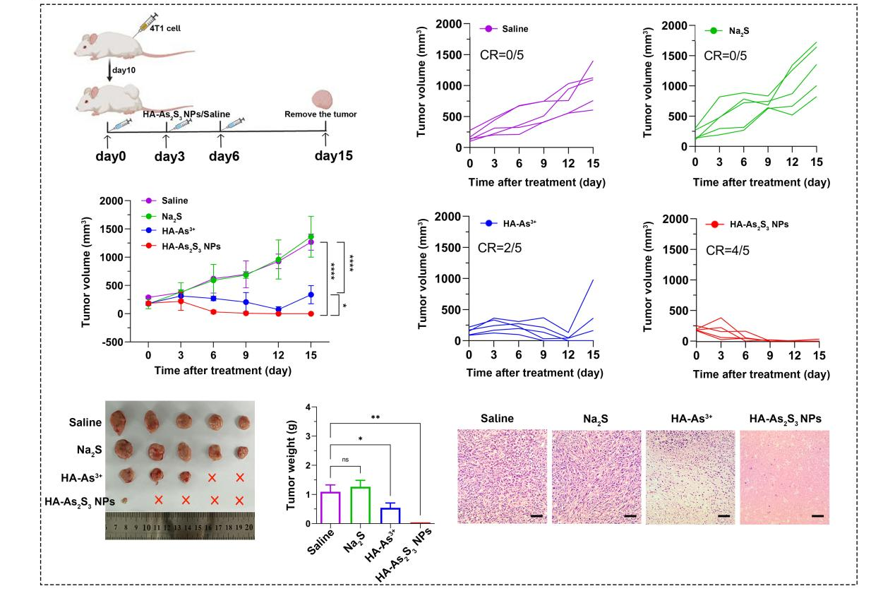 图3 HA-As2S3纳米颗粒体内抗肿瘤治疗结果
