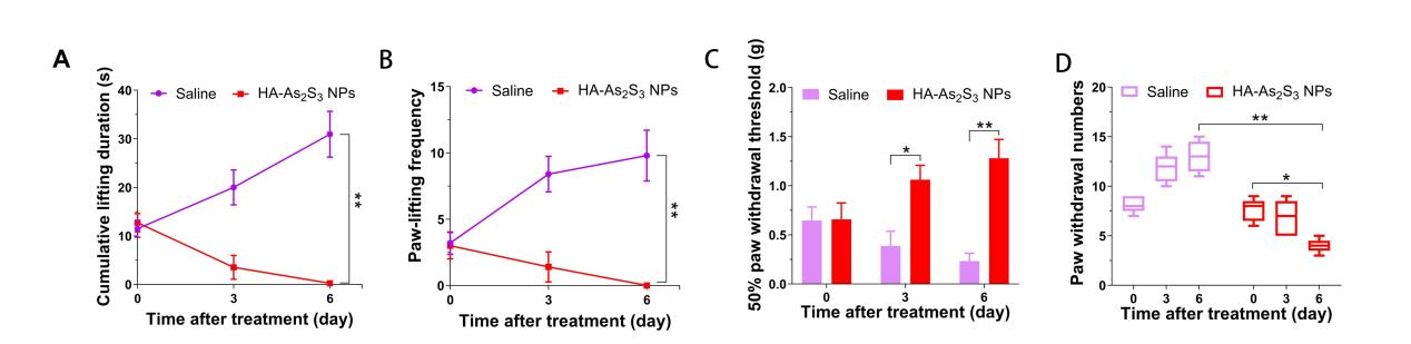 图4 HA-As2S3纳米颗粒消除局部癌症疼痛