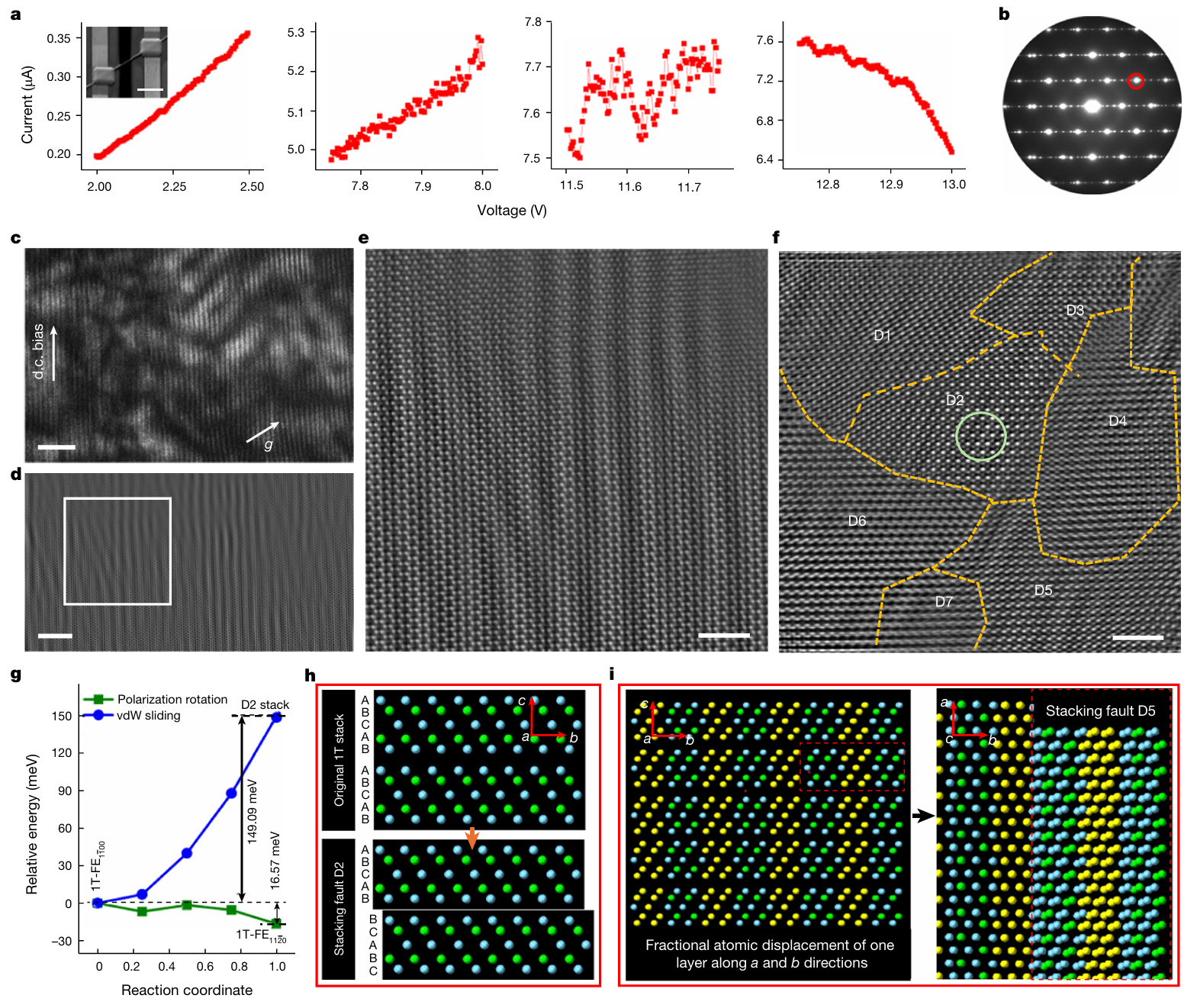 图3 对施加一系列d.c后出现滑动故障的β″- In2Se3纳米线器件进行STEM分析© 2024 Springer Nature Limited